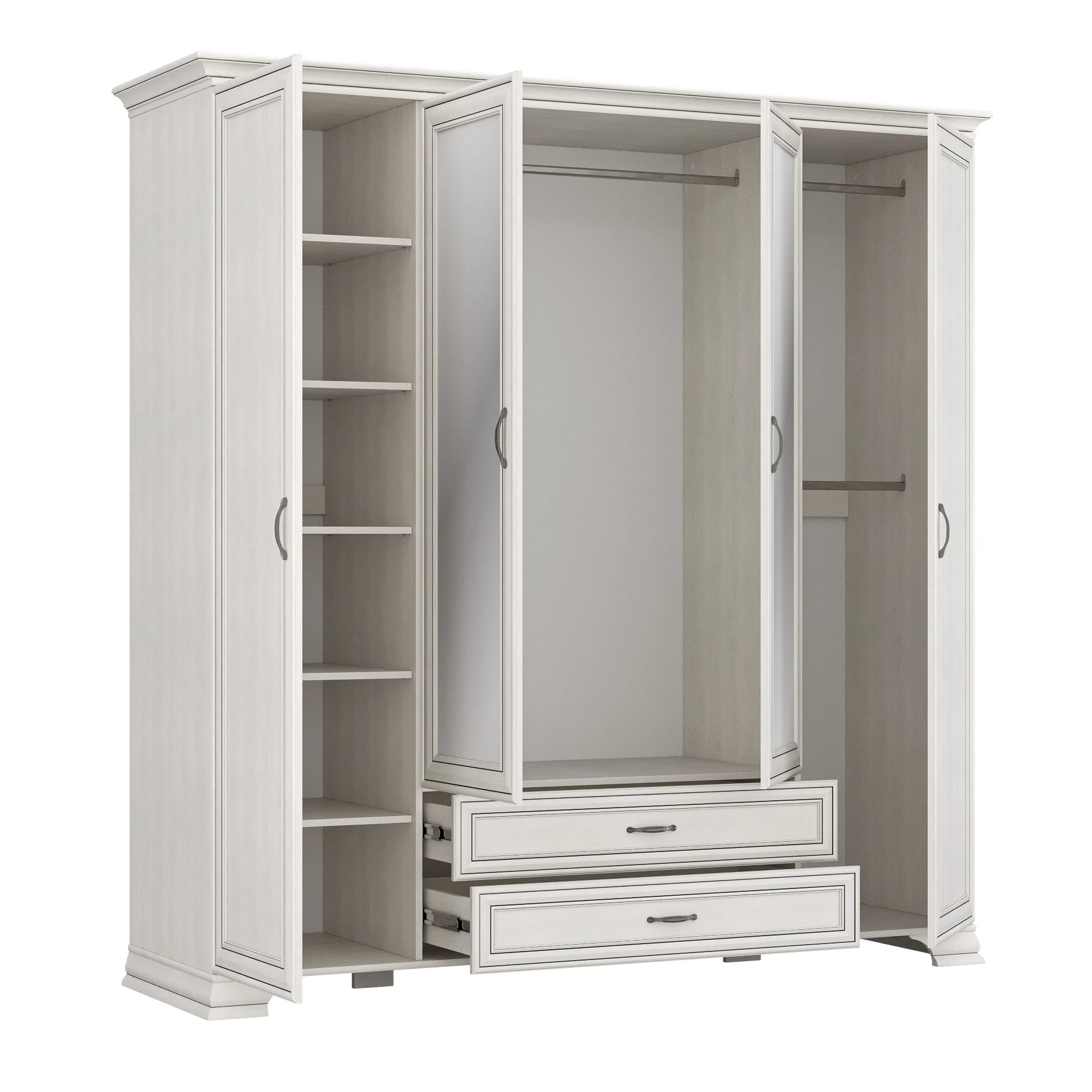 | Configuration | Number of doors: 4, Number of drawers: 2, Number of shelves: 5 |