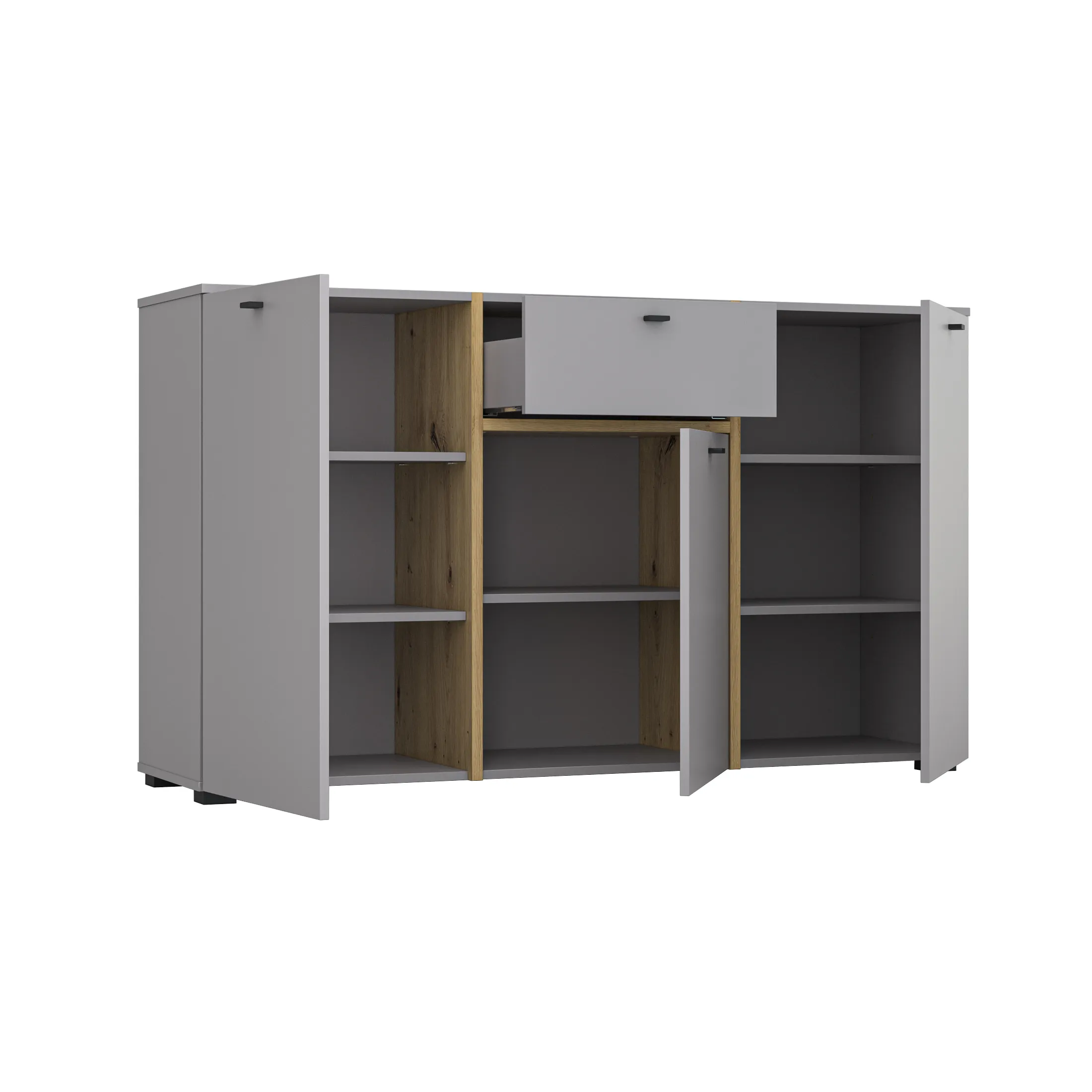 | Fronty | Płyta wiórowa 16 mm w kolorze szarym łupkowym 16, Płyta wiórowa 22 mm w kolorze dębu rzemieślniczego (elementy wystające) |