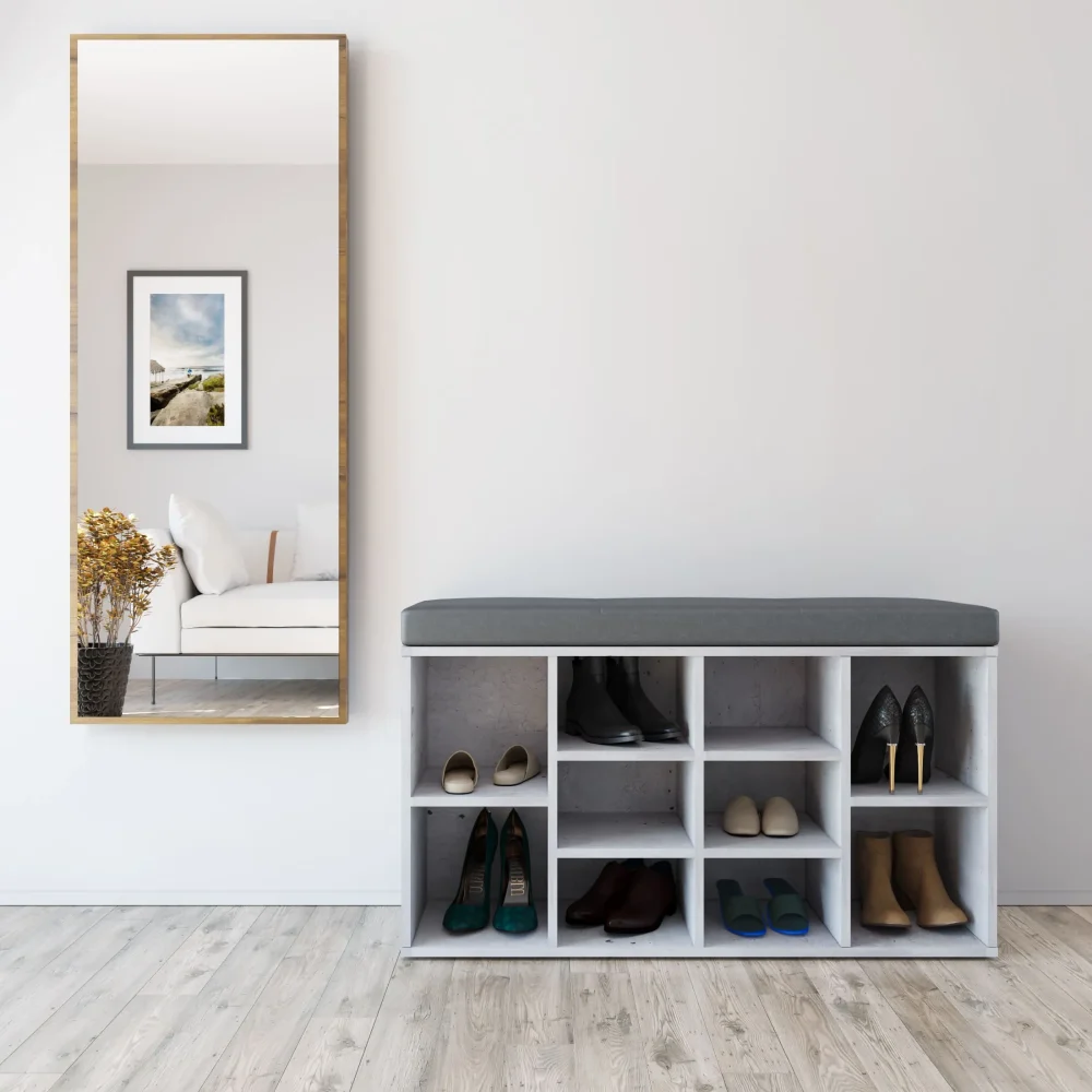 Półka dla butów z siedziskiem i dziesięcioma wnękami szary