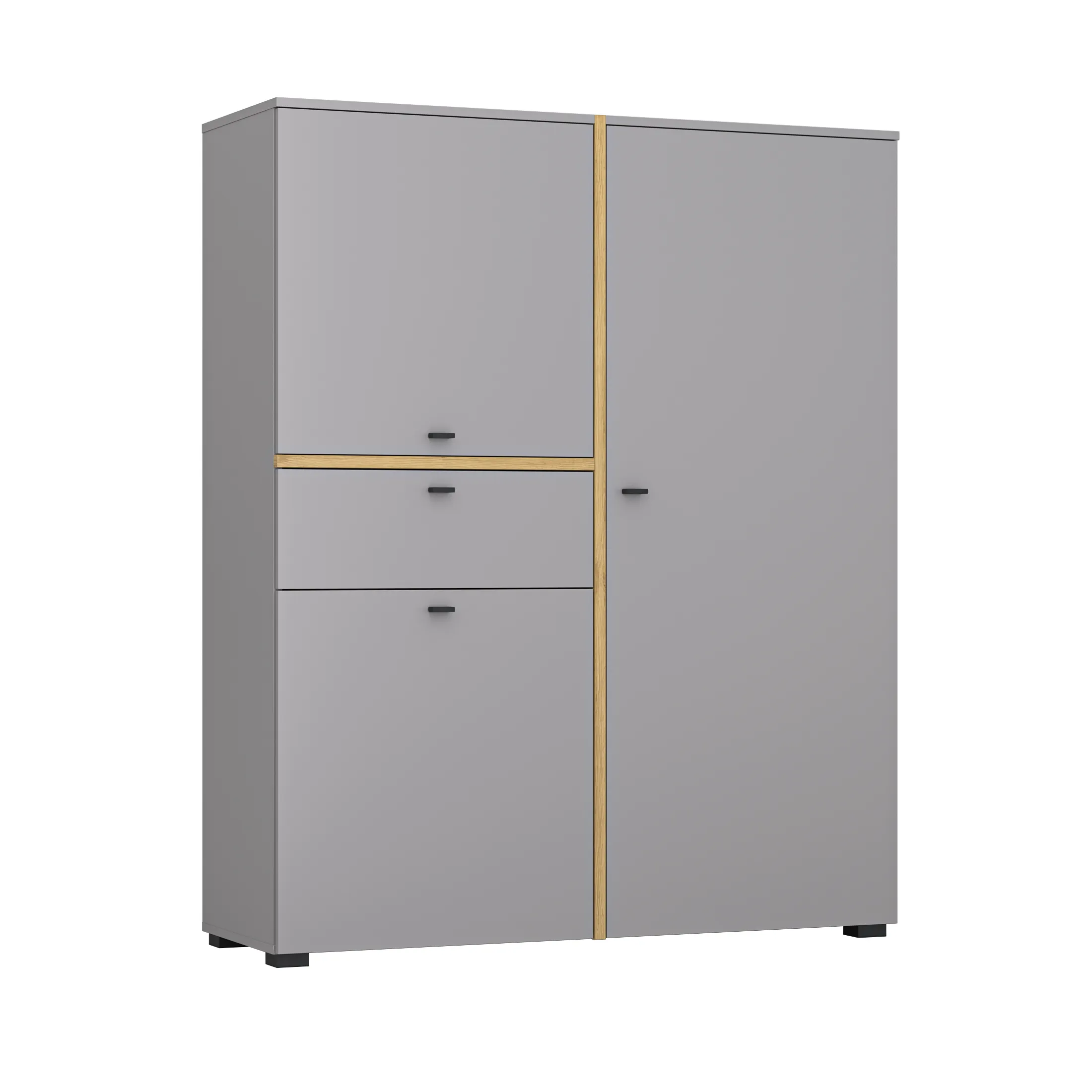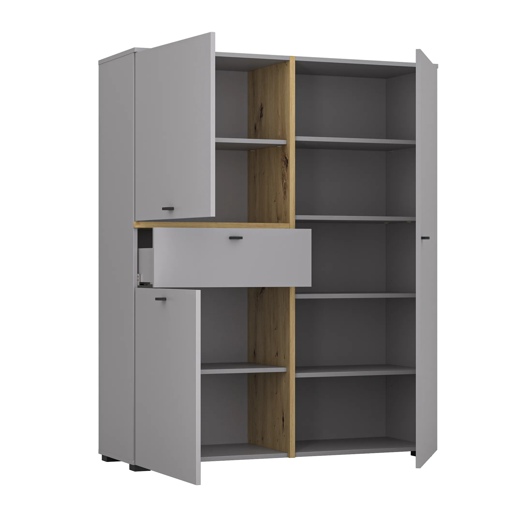 | Fronty | Płyta wiórowa 16 mm w kolorze szarym łupkowym 16, Płyta wiórowa 22 mm w kolorze dębu rzemieślniczego (elementy wystające) |